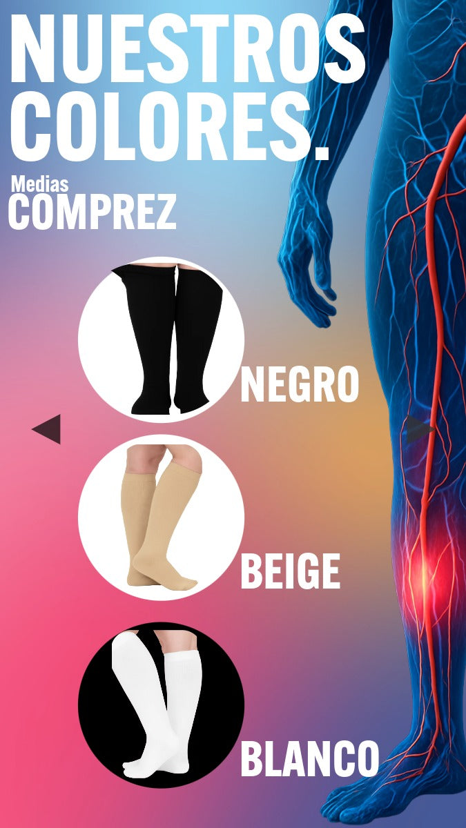 Las medias COMPREZ promueven una correcta circulación de retorno al corazón, evitando la acumulación de sangre y líquido en las piernas que generan trombos.